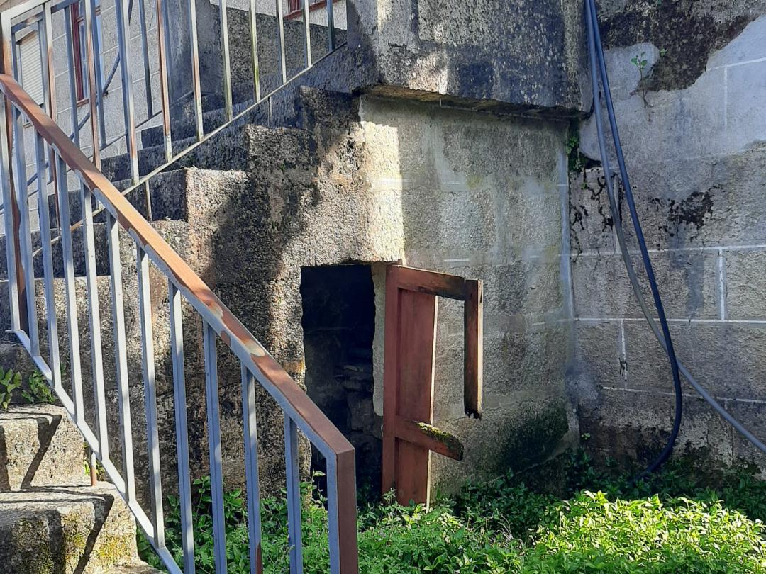 Descrição cave com adega e arrumos e terreno envolvente.